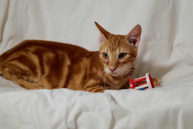 Ich liebe es, zu spielen, zu flitzen und dabei meinen hübschen roten Tigerschweif durch die Luft wirbeln zu lassen. Bälle, Klettern, Fangen – ich bin bei allem dabei. Aber genauso schnell wie ich tobe, schmeiße ich auch den Schnurrmotor an und kuschle mich zufrieden an Menschen oder meine Katzenfreunde.