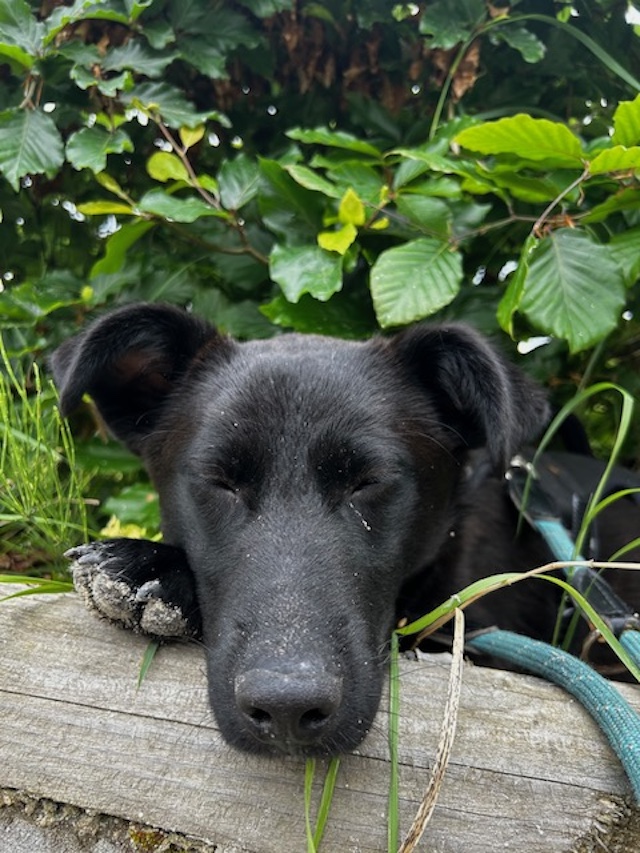 Den beiden erwachsenen Rüden im Haushalt war er am Anfang noch etwas reserviert gegenüber und hat sie sich im Haus im Zweifelsfall eher auf Abstand gehalten. Draussen laufen die Drei gut miteinander und werden insgesamt zunehmend aufgeschlossener.