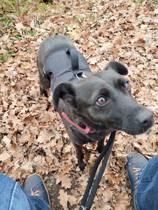 Arleta zeigt sich souverän mit Umweltreizen. Sie lernt gerade das Hunde 1×1, läuft sicher an der Leine, kennt das Autofahren und ist generell eine ruhige, angenehme Begleiterin. An der langen Leine orientiert sie sich toll am Menschen. An kurzer Leine ist manchmal noch etwas zügig unterwegs. Hundebegegnungen meistert sie perfekt und lässt sich noch nicht mal von bellenden Artgenossen beeindrucken. Arleta war bereits mit der Pflegestelle im Urlaub- sie ist also wirklich bereit in den Alltag zu starten.