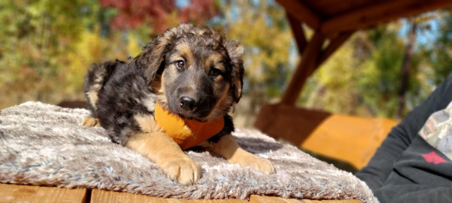 Der schnuckelige Áron ist um einiges kleiner, als sein großer Bruder. Auch in seinem Aussehen unterscheidet er sich enorm. Während Pablo ganz braun ist, hat sich Áron in schwarz und braun schick gemacht. Zusammen mit seinem Bruder ist er munter, verspielt und aktiv. Aber alleine zeigt er sich im Moment noch sehr schüchtern. Doch wenn sein Bruder voran geht, dann ist auch Áron bei allem mit dabei und genießt sein Leben. Zu dem Mitarbeiter*innen im Tierheim hat er schon Vertrauen aufgebaut, aber er braucht da immer einen Moment mehr.