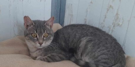 Raya ist eine zarte, schüchterne Katze, die Zeit braucht um Vertrauen zu fassen. Sie ist sozial mit Artgenossen.