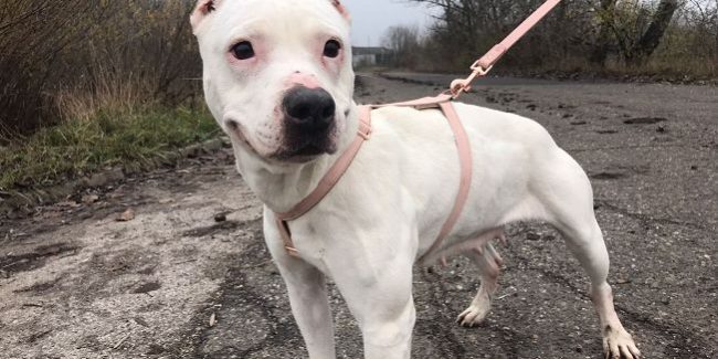 Dabei hätte die weiße Staffordshire(mix?)Dame genügend Gründe, mit den Menschen ein Hühnchen zu rupfen. Für eine besonders „gefährliche Optik“ wurden ihr die Ohren kupiert, sodass sie nun weder nach Deutschland (Rasse) noch in die Schweiz (kupierte Ohren) vermittelt werden kann und den sprichwörtlichen Sechser im Lotto für eine Vermittlung sucht.